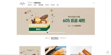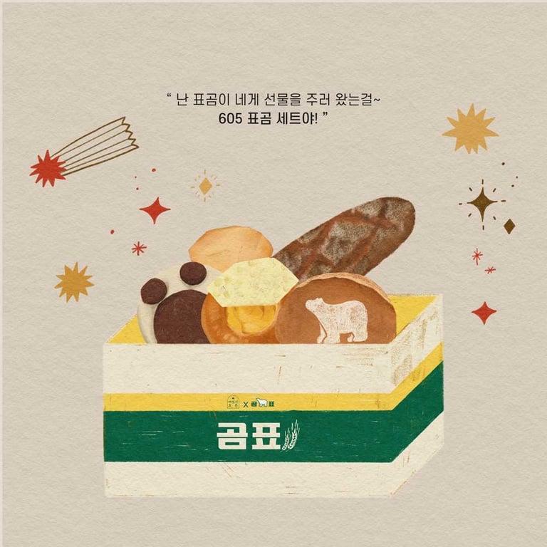 롯데쇼핑 PB브랜드 '여섯시오븐'과 '곰표'가 콜라보하여 3월 5일 부터 선보이는 605 표곰세트의 온라인 컨텐츠의 일러스트와 편집디자인 작업을 진행했습니다.